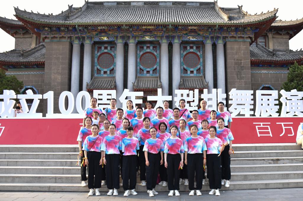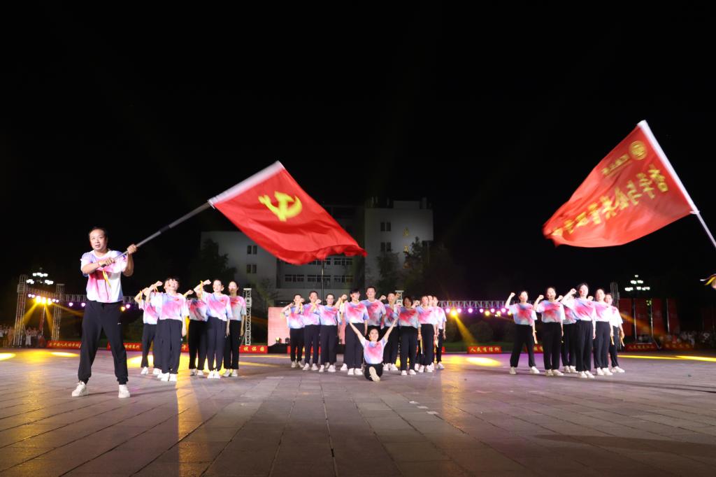 代表队由学院党委副书记、工会主席骆春丽担任领队,学院党委办公室主任、工会副主席刘喜英担任总教练。伴随着“再唱山歌给党听”的歌声响起,由两名男教工挥舞的党旗和院旗也在大礼堂广场随之飘扬。赛场上,参赛成员用身姿诠释哲管的奔放,用热情编织哲管的浪漫。他们高难度的技巧,明快奔放的动作,鲜明的节奏感,整齐划一的步伐向大家展示了哲管的激情,彰显了力与美的结合,赢得了在场观众的阵阵喝彩声。比赛全程教职工们始终面带微笑,传达出自信和积极向上的正能量。
