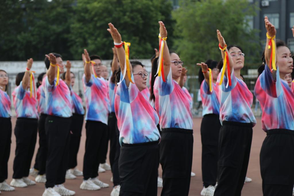 参赛教职工以效率换时间,用精准求完美。在一遍又一遍反复的动作,一曲又一曲相同的音乐之中不断打磨自己的舞步,无论是清晨或是日暮,不管是强风还是烈日,总能看到教职工们在南苑小广场辛勤排练的身影。