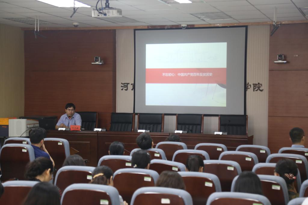 副院长田丰韶在学院三楼第一会议室中国共产党百年反贫困史专题报告。学院领导班子成员和全体教师参加了本次活动。