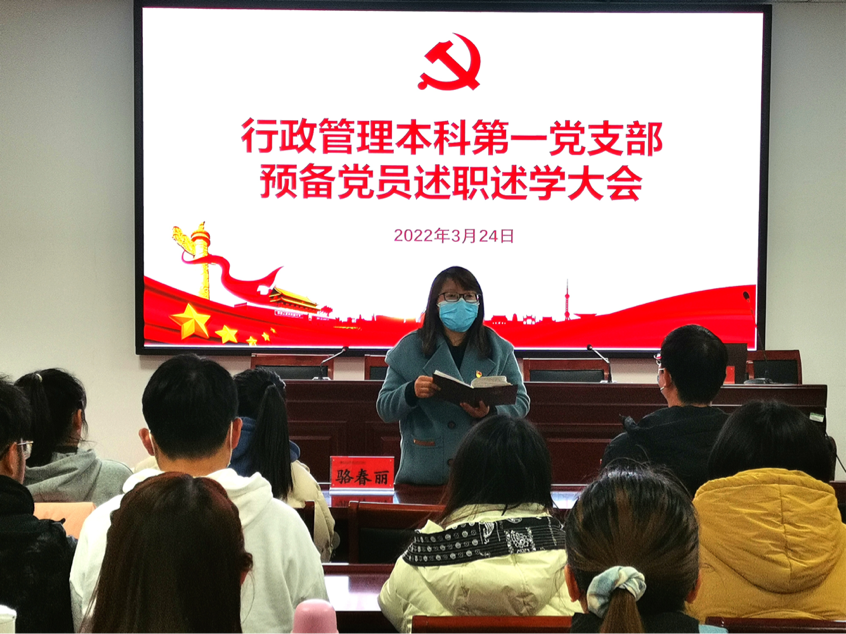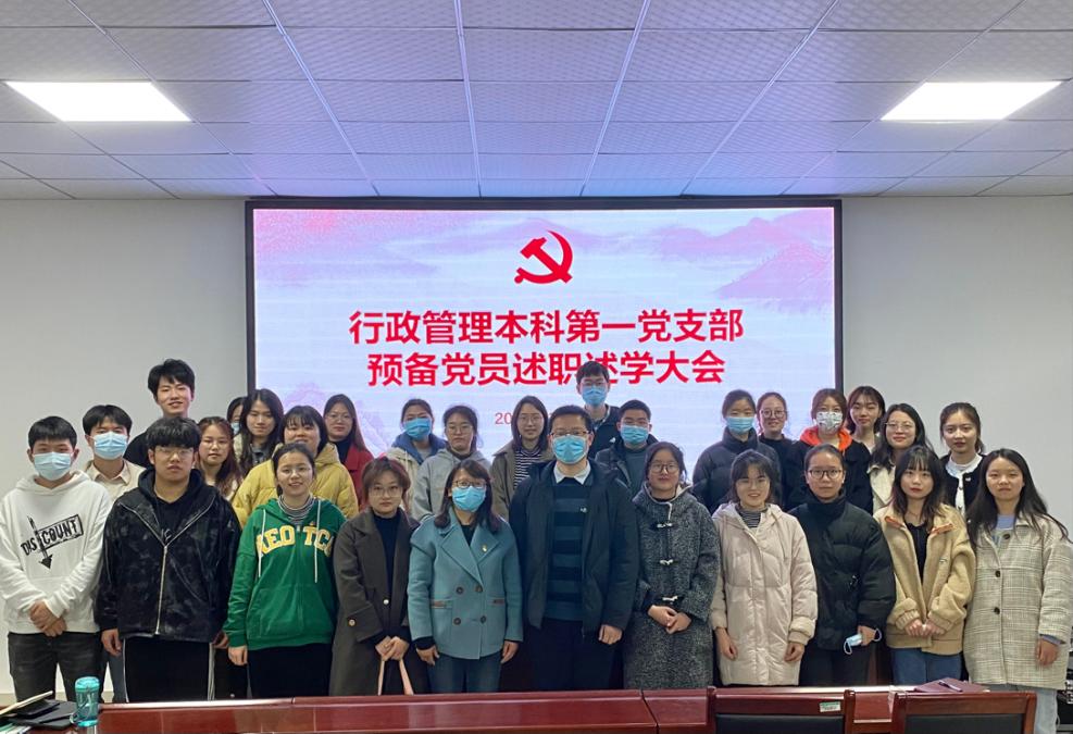 行政管理本科第一党支部在学院第三会议室召开预备党员述职述学大会。党支部书记骆春丽、本科2019级辅导员孙少飞和支部27名党员参加会议。