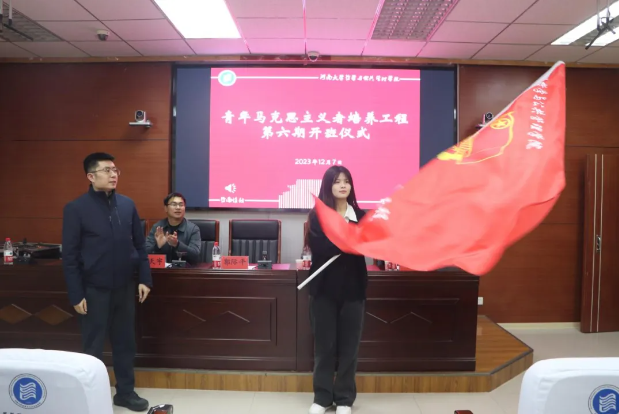 马克思主义培养者工程第六期培训班开班仪式于学院第一会议室举行。校团委副书记郭际平、院党委副书记何威、院党委办公室负责人王天宇出席会议。仪式由团委办公室负责人刘耀主持。