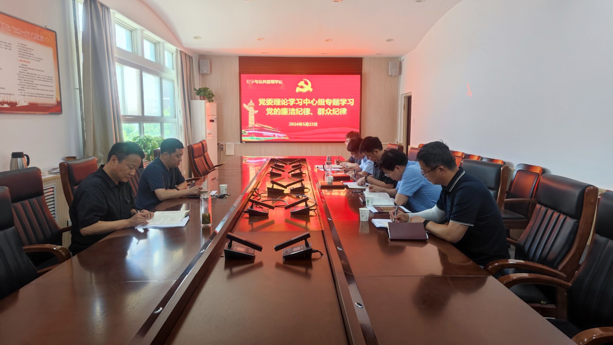 5月22日上午,学院党委理论学习中心组召开会议,专题学习党的廉洁纪律、群众纪律。学院全体党委委员参加会议,会议由学院党委书记党鸿军主持。