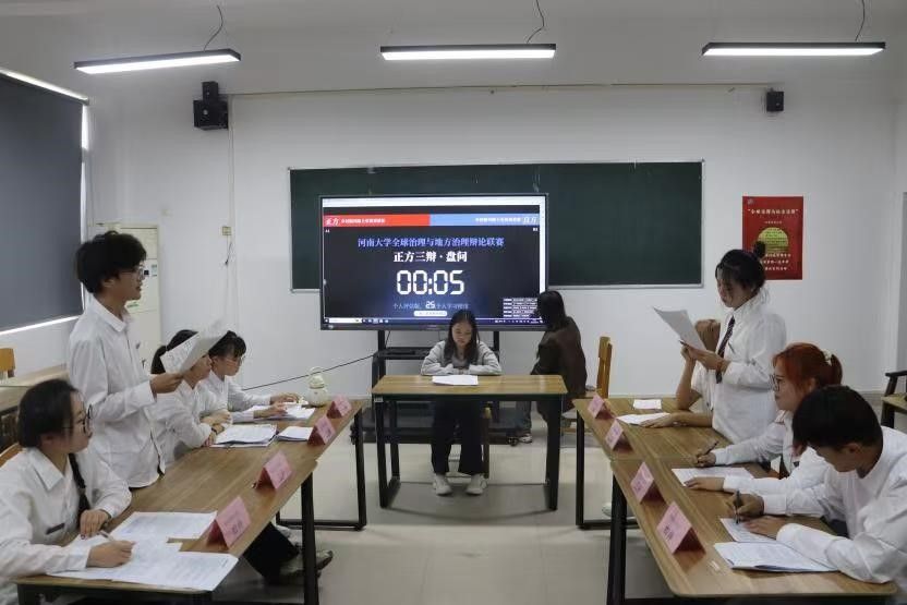 行政管理专业“全球治理与地方治理(2024年度)”辩论联赛第四轮比赛于院楼411举办,部分2022级,2023级行政管理专业学生到场观赛。
