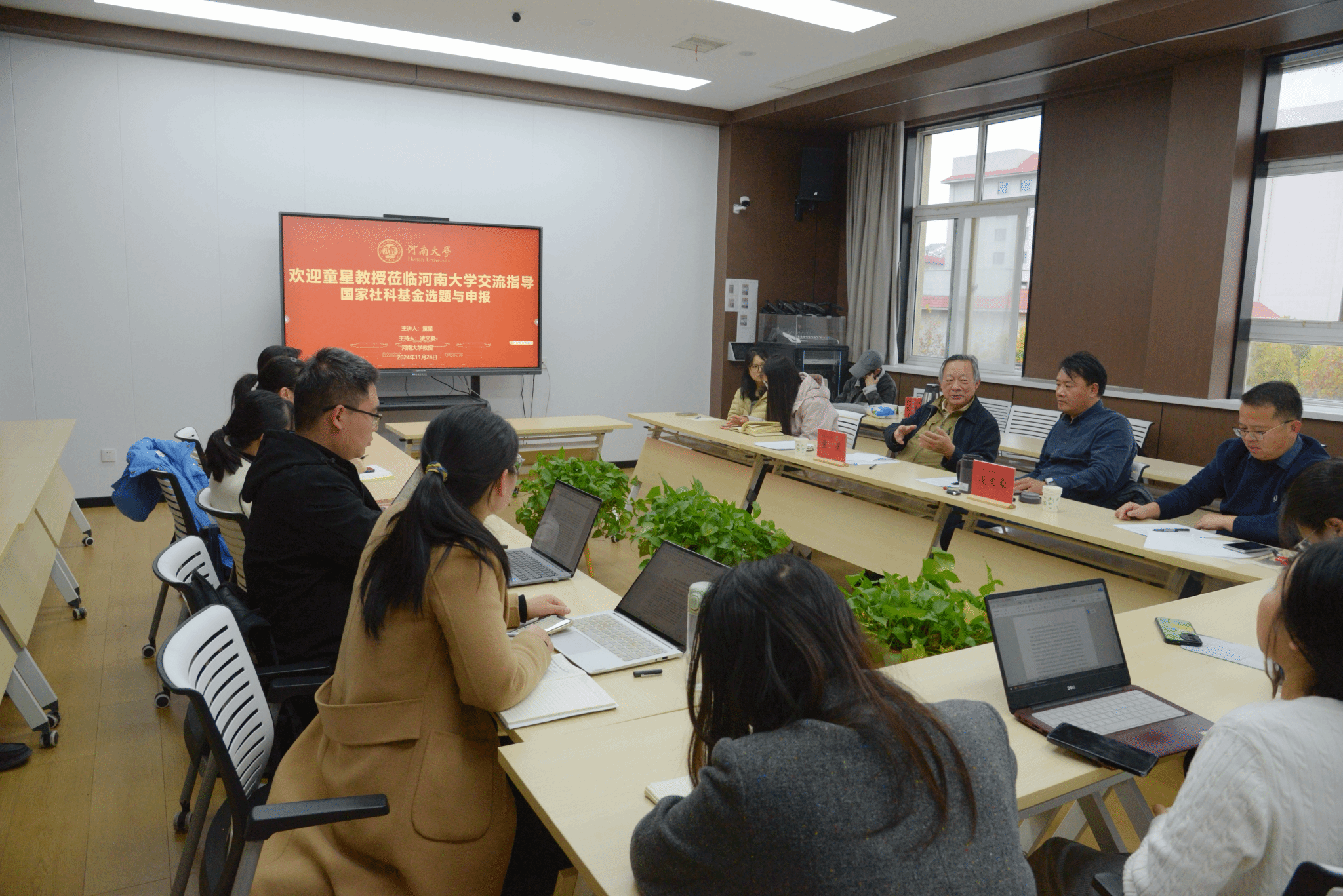 张亚玲、董贝贝等7位教师结合自身的课题项目,重点围绕选题定题、文献综述、研究内容、研究重点难点和创新点等内容与童星教授进行了深入探讨。童星教授根据党的二十大及二十届三中全会精神,并结合自己多年来担任国家社科评审的经验,遵循公共管理学科及社会学科的发展规律,逐一深入剖析学院老师的申报选题与本子内容,对在座老师们的国家社科基金申报的问题进行点评和答疑,并鼓励各位教师进行深入调查研究,对课题项目加强论证和打磨。另外,童星教授对各位教师分享中提到的专业词汇和不同专业词汇之间的搭配使用,如“社会支持”、“城乡治理融合”、“城乡府际关系”、“智慧养老”以及“农村养老服务”等,进行了深入解读并提出了独特见解,在场师生受益匪浅。