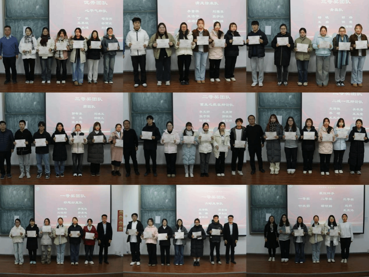 国家治理剧场演出结束后,进入“全球治理与地方治理”辩论联赛颁奖环节。经过一个学期的激烈的角逐,术道清心团队等团队荣获一等奖、二减一流团队等团队荣获二等奖、青英队等团队荣获三等奖,王淼,代润婷等28名同学荣获优秀辩手称号,付欣茹,邵明扬,赵桐,王庆玮4名同学荣获最佳辩手称号,学院领导和相关老师为获奖团队和个人颁奖。