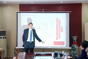 师生呈现了一场精彩的全英文讲座,崔忠洲老师在现场为大家作了细致的翻译。萨夫金教授从地缘政治等多个角度解读我国的“一带一路”,并且提出“亚投行”加速了亚洲区域的基础设施建设和经济一体化的进程,两者皆加强中国及其他亚洲国家和地区的合作。在讲座的提问环节,萨夫金教授就同学们提出的美国TPP协定、中俄合作等问题,纷纷予以回答,并表明自己的看法。整个讲座令在场师生受益颇多。