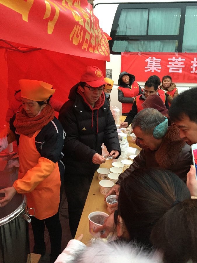 研究生会的同学们以志愿者身份协助开封大相国寺的施粥活动及随后义务献血等其他公益活动。