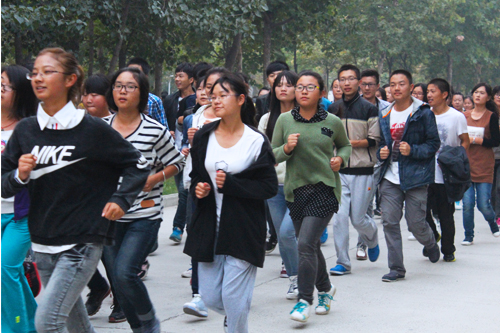 会在适合户外运动的周一至周五安排早操活动,早操内容有跑步、健身操、太极拳等多项活动。经过军训的洗礼,14级本科生以饱满的精神、坚韧的毅力投入早操活动。在14级各班体育委员的组织下,第一天的早操活动有序进行,进行了持续半小时的锻炼。整齐的队伍,有力的脚步,处处都散发着哲管学子身上的正能量。不停歇的六圈慢跑,同学们额头早已渗出细珠。即使有些同学感到吃力,但仍以快走的形式紧跟队伍的步伐。