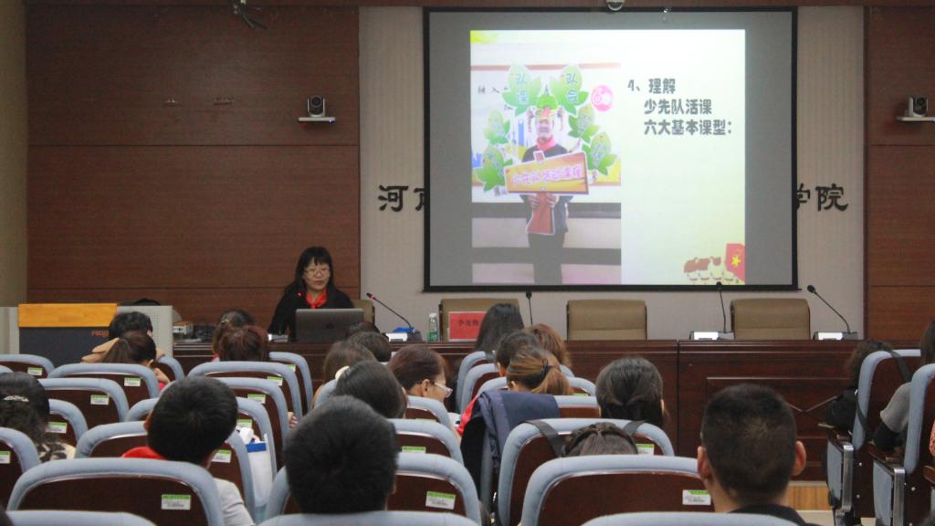 三楼大会议室向国培班学员讲授少先队理论工作实践知识。