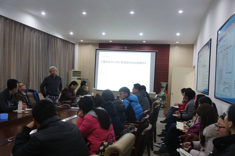 与此同时,鞠教授还分析了从徐光启、利玛窦、康熙、三上义夫到现代中算史家构建这一误解的过程和原因,并谈到这类误解其实是一种社会构建,妨碍了中国古代算学史研究实现自己的目标。最后,鞠实儿教授由本土知识延伸到学科前沿,创造性的和大家谈论了刘-祖的周径率指向何处,譬如研究宇宙的密度,能量的非无穷可分及计算机图形的加工等,为同学们提供了一个独特的研究视角。