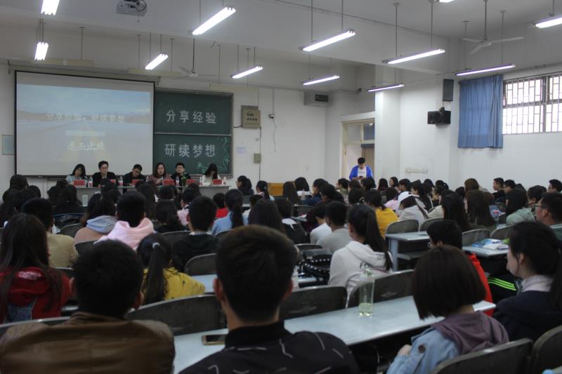 团委学生会学习部主办的以“分享经验,研读梦想”为主题的考研交流会在综合楼2202教室举办。