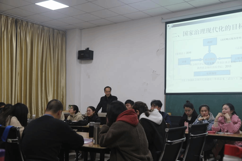 公共管理专业研究生学术沙龙在MPA第二教室如期举行。本次学术沙龙的主题是“新时代的国家治理现代化研究”,来自公共管理专业2017、2018级的近40名研究生参加了本次学术沙龙,沙龙由2017级社会工作与管理专业的研究生李琳主持,付光伟老师应邀出席。