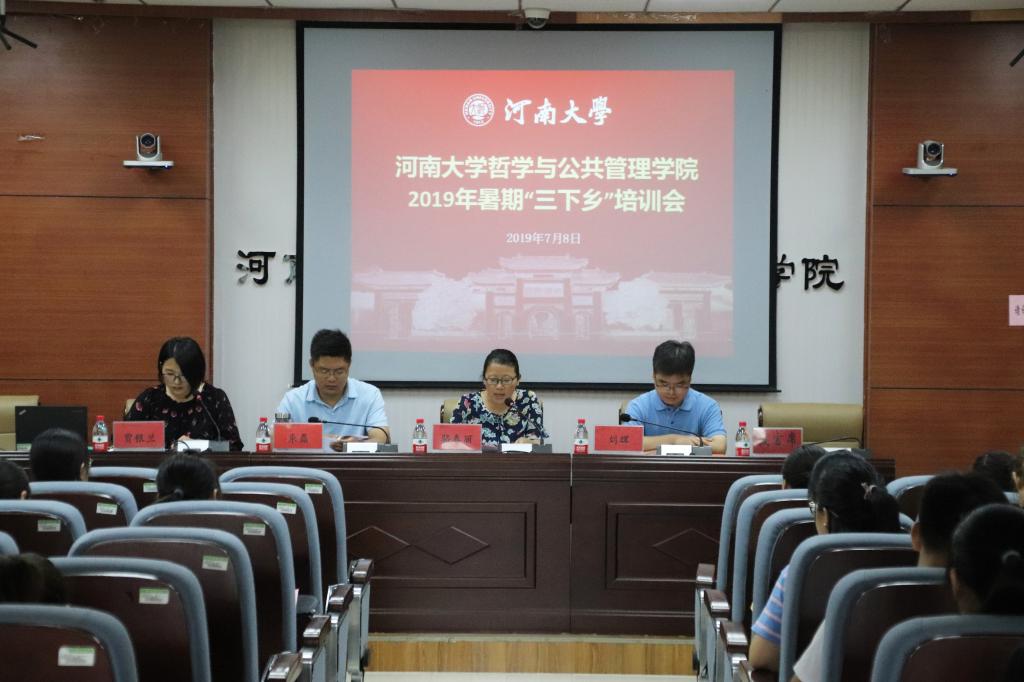 在第一会议室举办2019年暑期“三下乡”社会实践培训。学院党委副书记骆春丽、行政管理系刘辉老师、社会工作系朱磊老师及“三下乡”团队成员参加会议,会议由团委负责人贾银兰主持。
