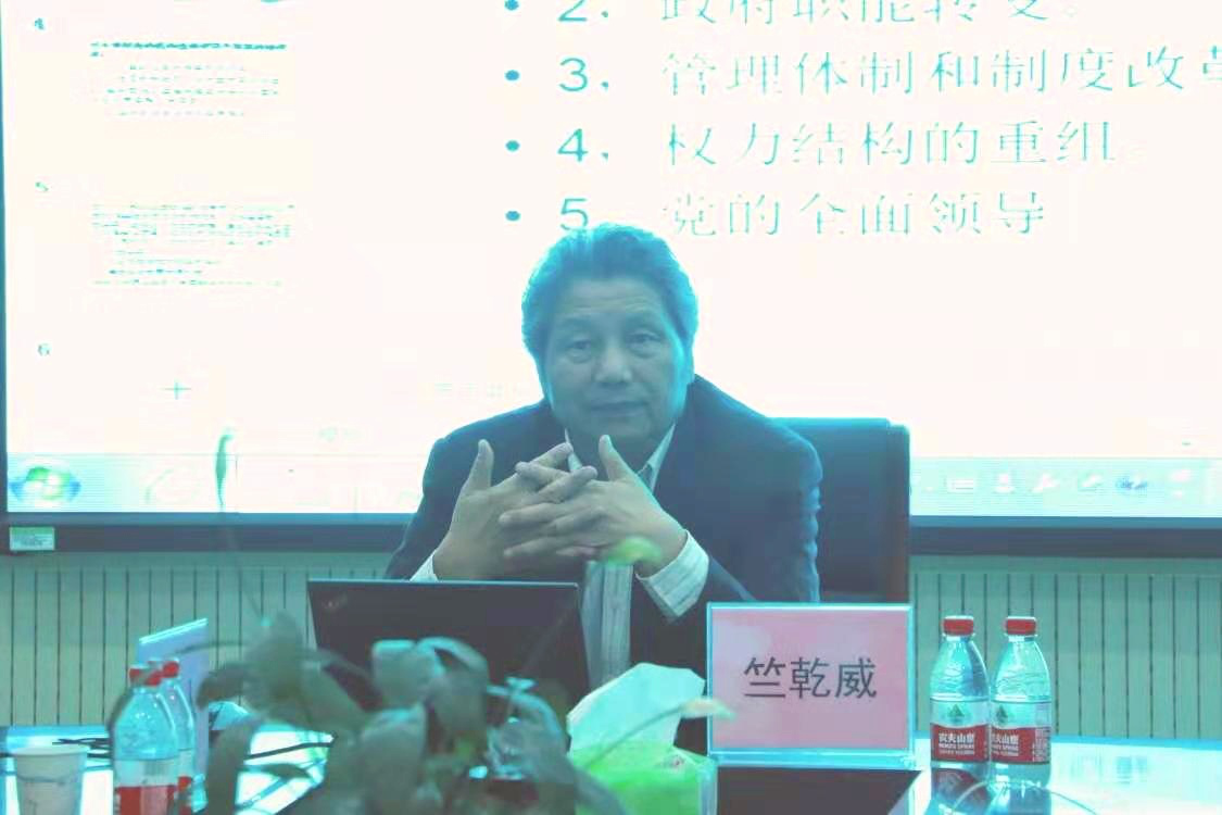姬志闯在致辞中对受邀嘉宾复旦大学竺乾威教授的到来表示欢迎,并向与会人员介绍了竺乾威教授的学术经历与成就。他指出该讲坛链接学界专家学者、聚焦公共管理领域前沿问题,是中原公共管理学术交流的新高地。