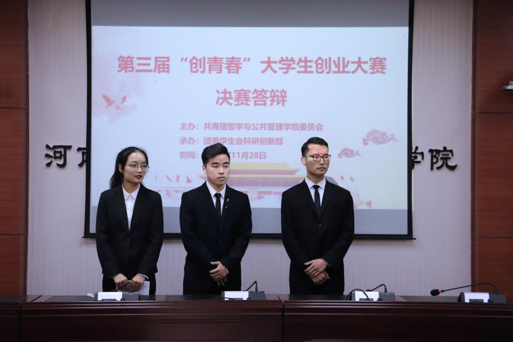 于第一会议室举办第三届“创青春”大学生创业大赛决赛答辩。8位来自不同专业的教师受邀担任评委,共有32支队伍参加本次答辩。