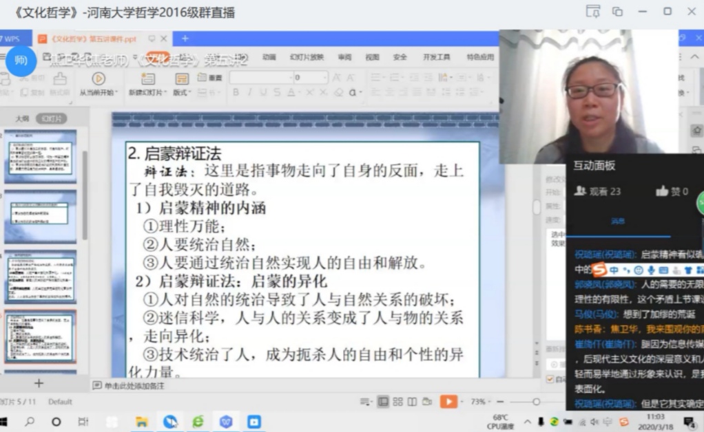 焦老师说:“直播课程对大多数教师来讲都是第一次。教学过程中会有各种不足之处,但只有边播边学,应对每一次挑战,吸收新的技能和经验,不断提高自己,才能在疫情期间不愧对学生,不愧对自己,也不愧对国家。”
