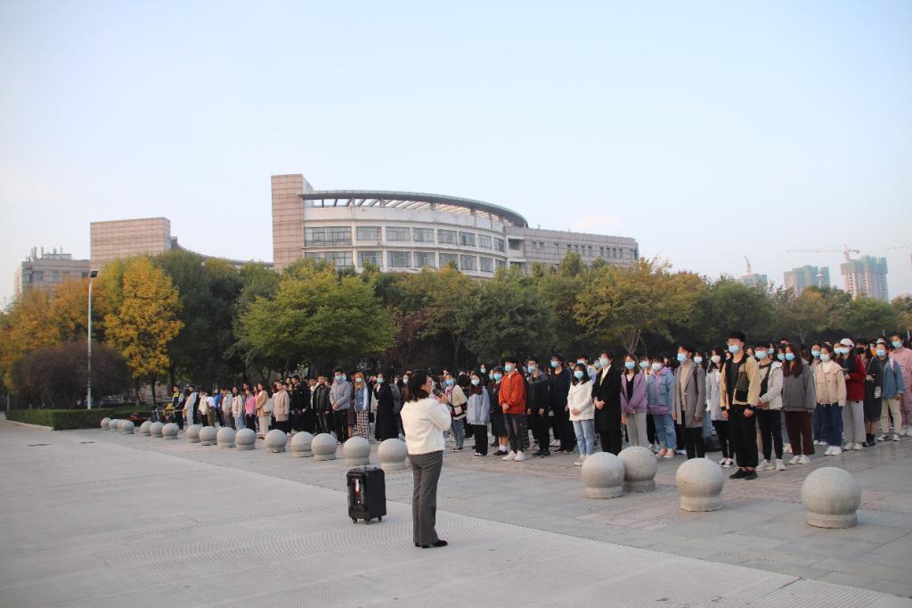 在金明校区明德广场举行升旗仪式。学院党委副书记骆春丽,各年级辅导员,全体本科生以及研究生一年级学生参加本次仪式。