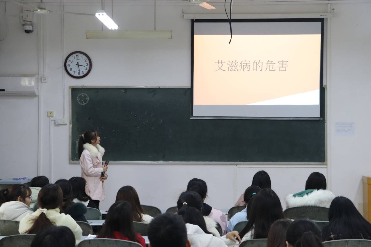 线下宣讲环节,负责人主要围绕什么是艾滋病、艾滋病的传播途径与危害以及如何防止艾滋病等方面进行讲解。结合详实的案例与数据,引导大家树立正确的防范意识,以平和、自然的心态面对艾滋病患者,做到不歧视、不特殊对待。同时各年级以班会的形式组织观看“艾滋病防治知识公益直播”,进一步加强对艾滋病相关知识的学习。2018级行政管理专业庞聪燕在活动结束后表示:“本次艾滋病日宣讲活动使我受益良多,艾滋病是全世界面临的重大公共卫生问题和社会问题,大学校园亦不能幸免。作为新时代大学生的我们更应该知“艾”防“艾”,以爱抗“艾”,在任何时候都要践行健康的生活方式。”