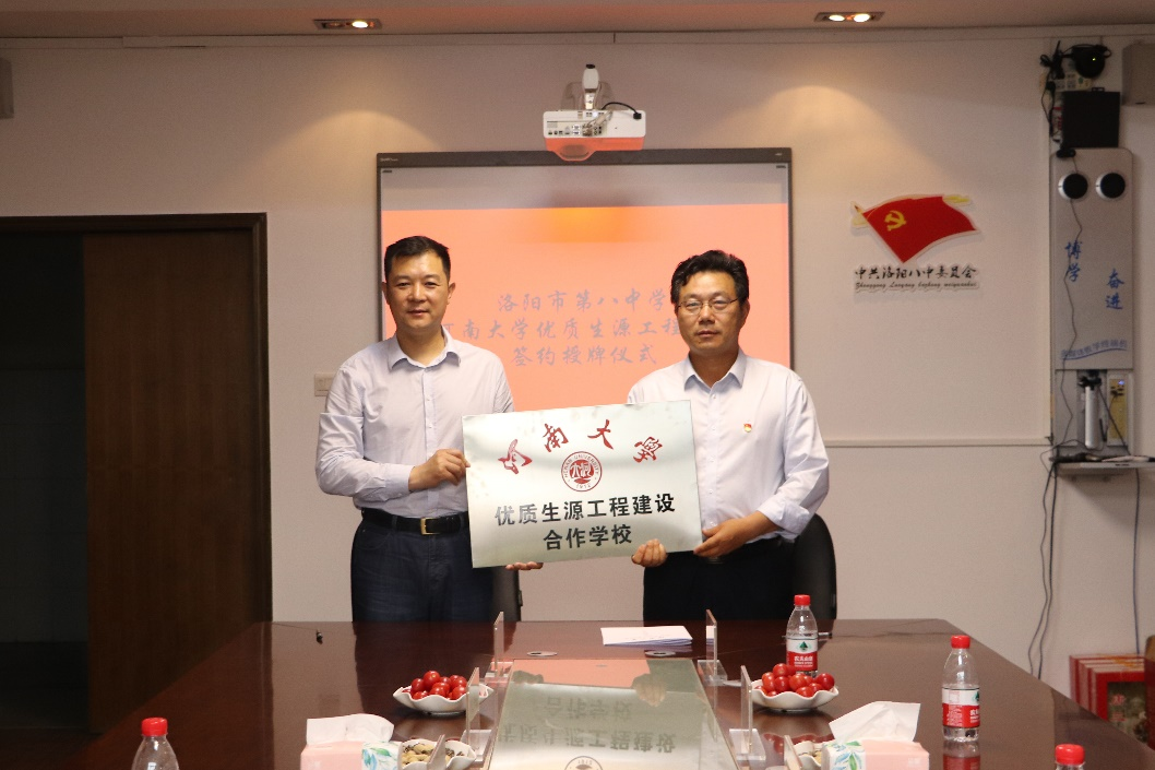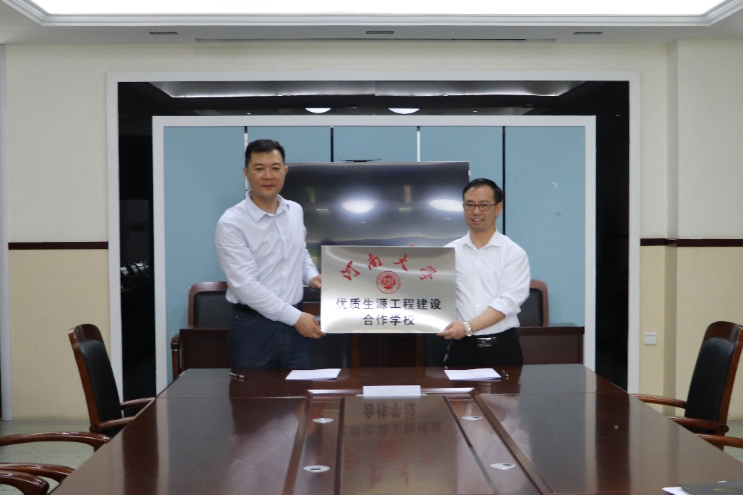优质生源工程建设签约暨授牌仪式。两所高中的领导表示将以此次授牌活动为契机,牢记立德树人使命,积极推进优质生源工程建设,合作共赢,为学生谋发展,为国家育英才。