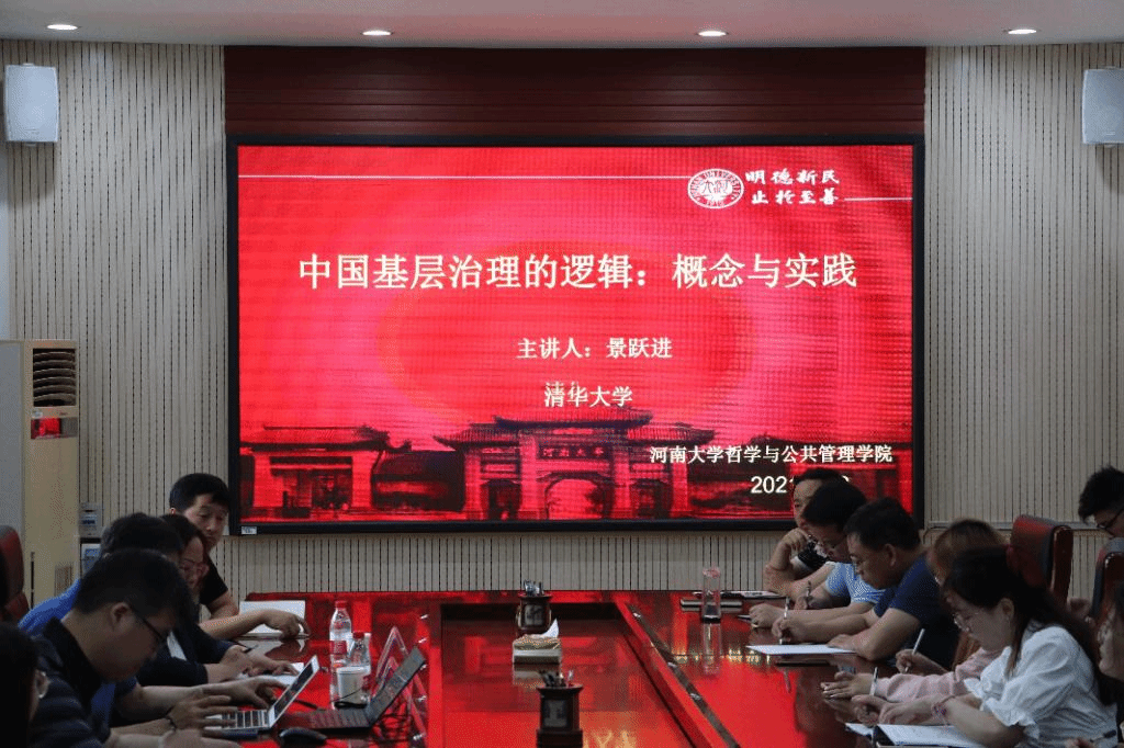 景跃进教授以本人研究发现为基点,认为中国基层治理研究应该关注概念适用性和实践生态。他从开封历史文化呈现方式切入,用幽默风趣的语言引出讲座主题,通过对比中西方政治、经济、文化等各方面的差异,阐明研究中国基层治理应当同国家发展阶段相结合,从整体出发,加深理解,切忌片面、以偏概全。在分析中国共产党基层政权建设的经验中,结合计划经济与市场经济下基层治理的内在逻辑不同,他阐释了研究基层治理的概念网络及其实践解释力。沿着改革开放后基层社会治理发展变化的时间轴线,通过具体分析人们的居住形态,生活方式和行为习惯的变化,他指出中国正在实现从“社会管理”向“社会治理”的转变,“社会治理空间塑造”将是基层治理现代化研究的重要议题。