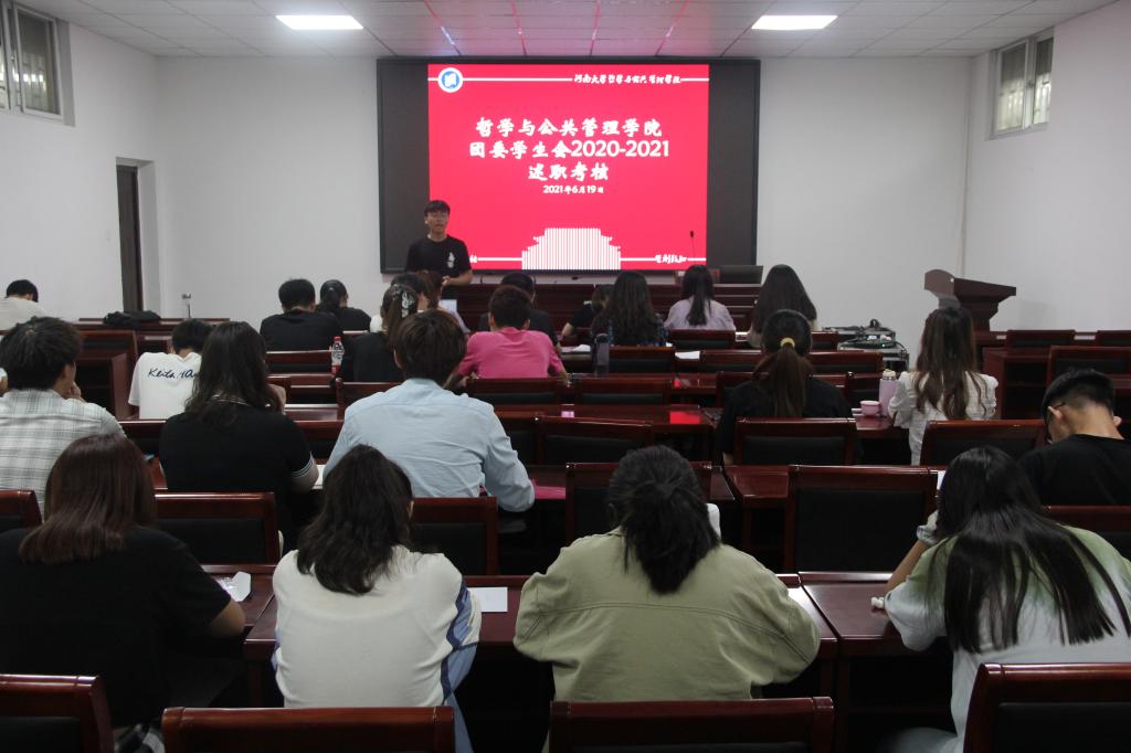 于学院第三会议室举行团委学生会2021年述职考核会议。学院团委书记贾银兰、学生会全体成员参加会议。