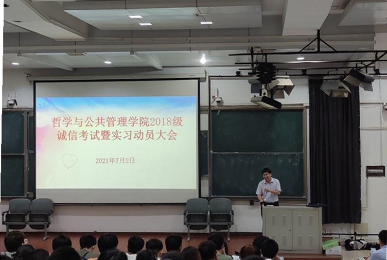 在金明校区2306教室举行2018级本科生诚信考试暨实习动员大会。学院副院长田丰韶、教务办主任张可新出席本次会议,2018级全体本科生参加会议。会议由2018级辅导员王天宇主持。