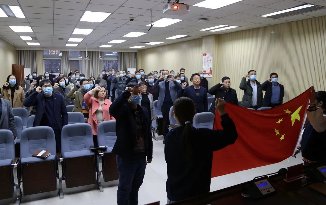 在第一会议室举行全体教工会暨师德师风宣誓仪式。学院全体教师参加此次活动。