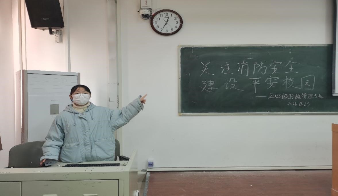2020级本科生代表在金明校区综合楼5104举行“关注消防安全,建设平安校园”主题班会。班会由2020级行政管理专业杜红艳主持。