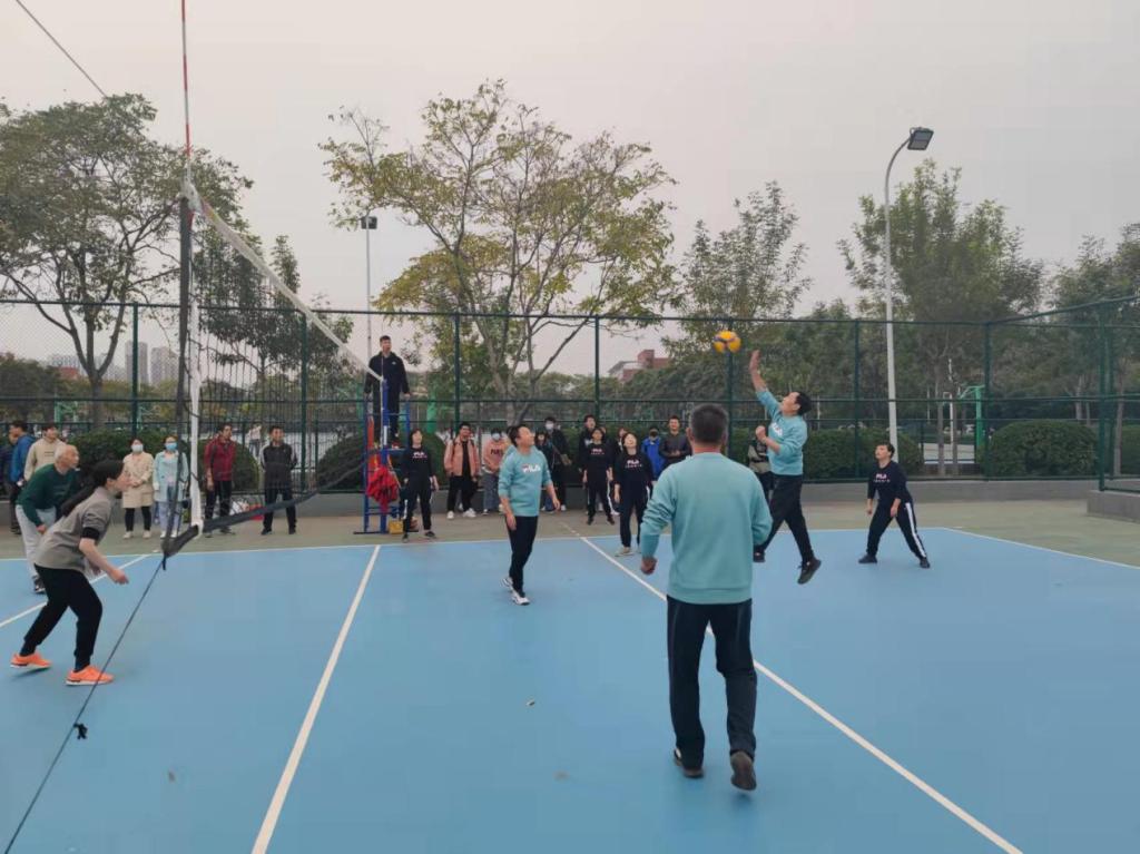 寒风划长空,排球凌空跃。伴随着一声哨响,党鸿军一个高抛发球,掀开了整场比赛的帷幕。紧接着,起跳、拦网,唐秋伟接球后大力扣球得分。场上的女教师更是巾帼不让须眉,郑雪飞稳接多个一传,刘素姣蜻蜓点水般的巧打轻吊。老师们一个个攻守有度,配合默契,每一次精彩的传球与得分都引来欢呼阵阵,现场的气氛渐进高涨。