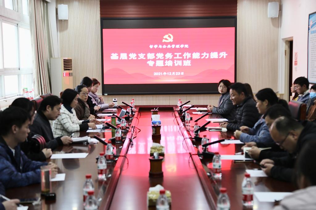 党委在支部换届后举办了基层党支部党务工作能力提升专题培训班。学院党委委员、各支部书记和支部委员参加此次培训班。