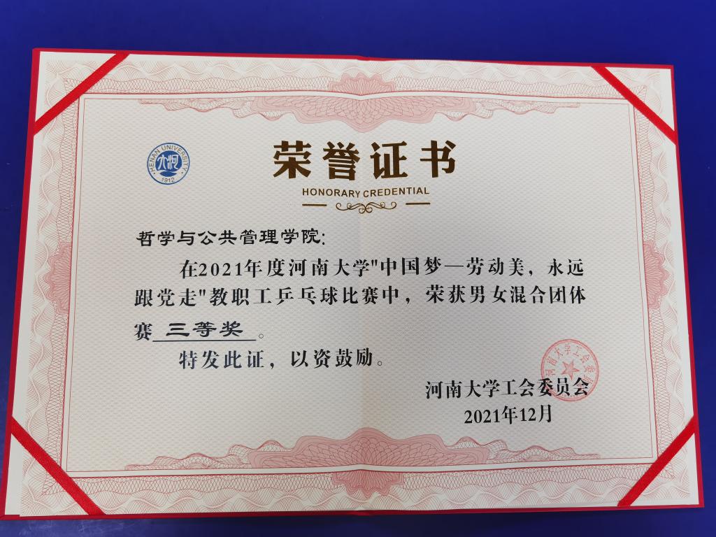 教工良好的精神风貌和团队意识,学院工会精心组队,院长姬志闯亲自带队,队员们齐心协力,经过二十余天顽强拼搏,取得团体第七名的好成绩,荣获三等奖。