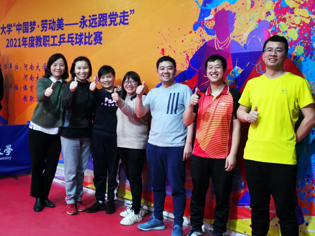 以小组第二的成绩顺利出线。值得一提的是,在与经济学院的第五盘“生死战”中,决胜场刘素姣老师面对经济学院女老师的长胶打法,稳扎稳打,不急不燥,最终在决胜局力挽狂澜,拿下关键一分,赢下比赛,奠定了片区赛出线的良好基础。