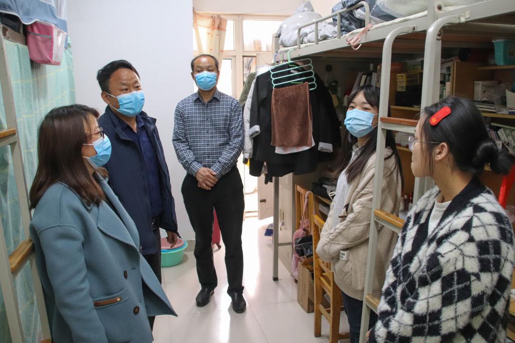 会议结束后,学院领导一行深入学生宿舍进行走访调研,耐心了解同学们的校园生活现状,叮嘱大家要服从学校管理,勤洗手、常通风、戴口罩、少出门、不聚集,注意宿舍卫生和自我防护,保持身心健康,有问题及时反映。