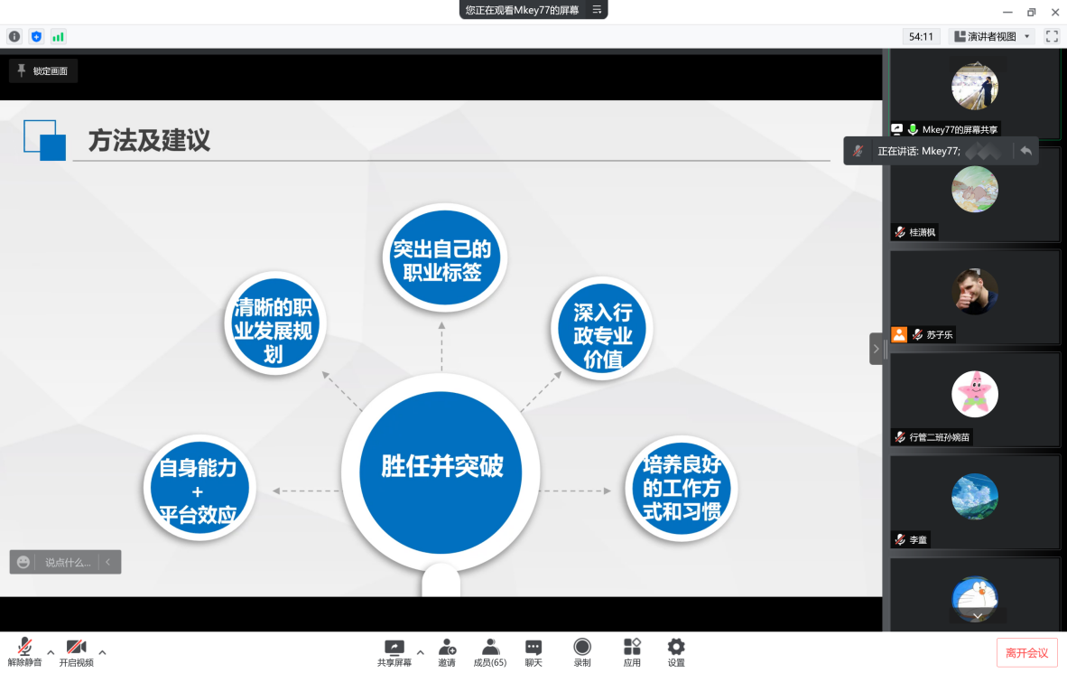 本次经验分享会为行政管理专业学生提供了一个了解就业的平台,有助于推动本科学生了解就业形势,做好未来的职业规划,行远自迩、踔厉奋发,致知力行,踵事增华!