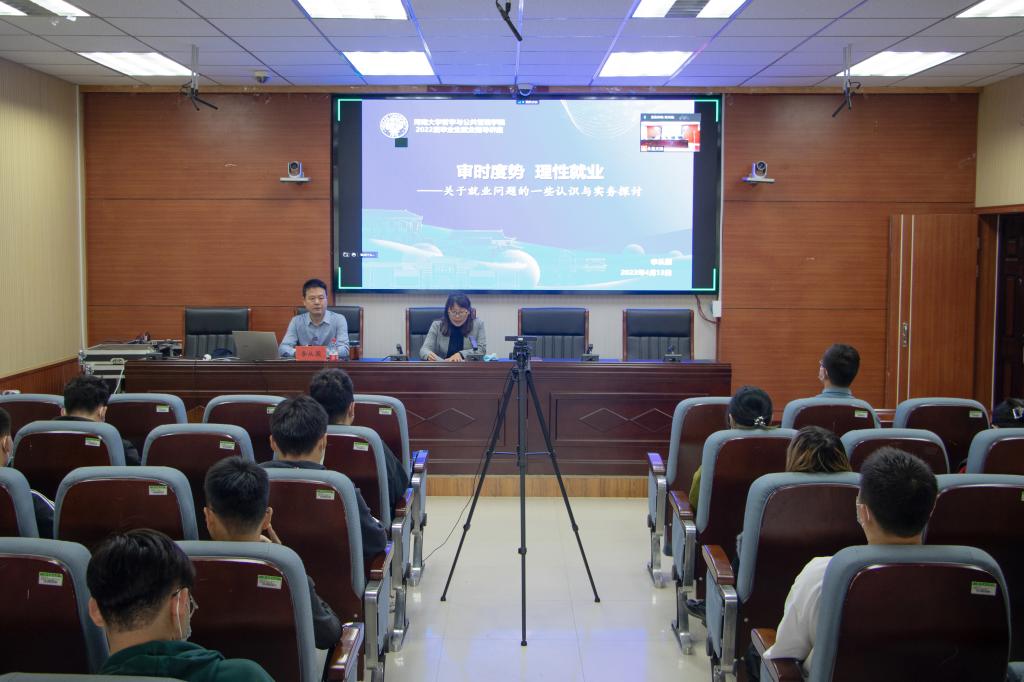 特邀学校就业创业指导中心主任李从国在学院第一会议室开展2022届毕业生就业指导讲座。讲座由学院党委副书记骆春丽主持,2022届硕士和本科毕业生共300余人通过线上线下相结合的方式参加。