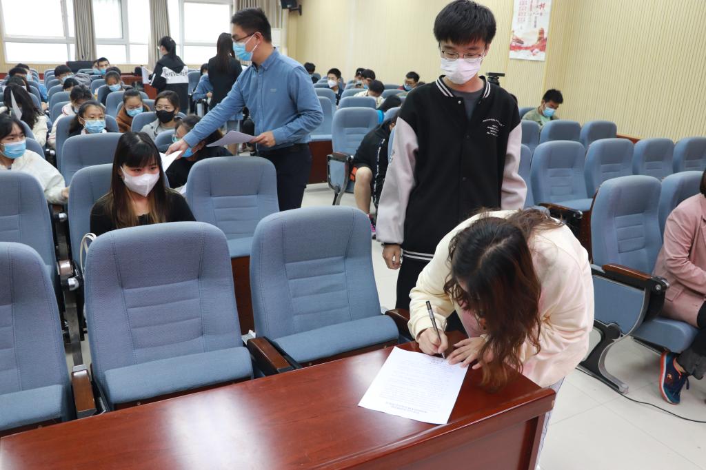 研究生宿舍长赵靓慧彦和本科生宿舍长刘攀分别作表态发言。他们表示,会不折不扣按照学院要求,带头执行疫情防控相关规定,为维护校园安全稳定尽心尽责。全体宿舍长依次签订《糖心视频