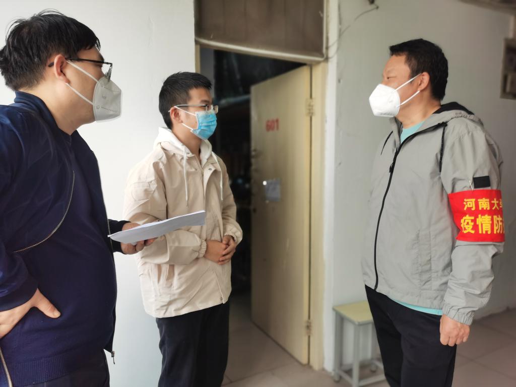 院党委书记党鸿军、院长姬志闯一行分为两组,挨个宿舍走访,和同学们亲切交谈,细心询问同学们的考研备考情况、网课学习效果、论文写作进度和特殊需求,勉励大家静下心来,认真学习,多与授课老师线上互动交流。对于考研同学,院领导叮嘱大家要把握住最后不到两个月的冲刺时间,合理规划,主动寻求学院老师的帮助去答疑释惑。看到2019级同学备战考研劲头十足,其他年级同学网课学习精神饱满,宿舍氛围安静和谐,领导老师们甚是欣慰,他们用笔详细记下了同学们的特殊需求,并当场协调解决,确保同学们学习生活顺利、心情舒畅。