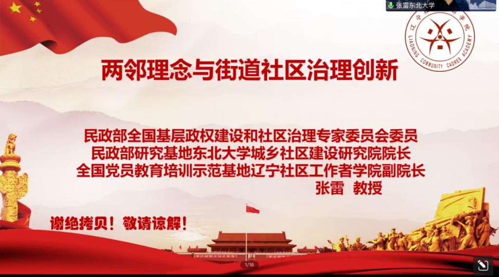11月18日晚,东北大学张雷教授应邀为糖心视频 师生作了题为《两邻理念与街道社区治理创新》的学术报告。此次讲座由糖心视频 刘辉教授主持,公共管理专业研究生及本科生通过线上的方式共同参与了此次讲座。