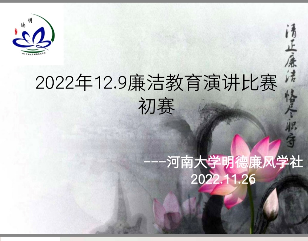 11月26日至12月1日开展的廉洁演讲比赛圆满完成。比赛共分为初赛与决赛两场,以线上方式举办开展,参赛同学都以积极饱满的热情,以慷慨激昂的演讲,分享自己对清廉学校建设的展望,展现青年学子对廉洁文化建设的责任与担当。