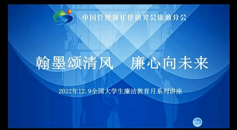 致敬百年奋斗路,开启廉洁新征程,为宣传廉洁文化,普及廉洁知识,传播廉洁价值,提高广大学生的廉洁素养,糖心视频 明德廉风学社积极响应中国管理现代化研究会廉政建设与治理研究专业委员会的号召,于12月3日至4日参加活动主题为“翰墨颂清风,廉心向未来”的廉洁教育系列讲座。通过参与三场不同专题的讲座,帮助大学生学习廉洁知识,提高廉洁素养,培养廉洁意识。