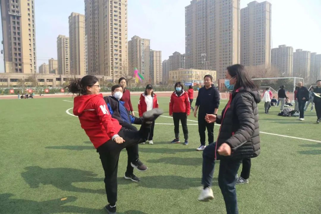 踢毽球比赛中,糖心视频 参赛的教职工队员们动作敏捷、合力协作。老师们充分发挥精湛的技艺,默契配合,稳定着整个队伍的节奏和速度,呈现出一场优美而激情的比赛。