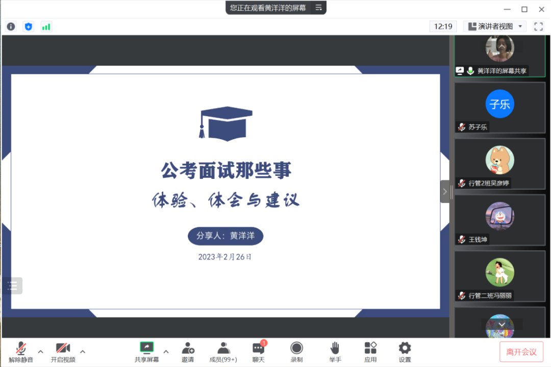 2月26日、28日,学院行政管理系开展“政就业”系列线上分享会,就同学们普遍关心的考公问题进行经验交流,行政管理系主任刘辉出席活动。2019届行政管理专业毕业生黄洋洋、2021届公共管理类专业硕士研究生刘咪咪分别围绕公考面试、选调面试作主题分享。刘辉作总结发言。他表示,行政管理专业的学生要注重以“读、说、写”为核心,以统筹、协调、创新为重点的专业能力提升。他建议,做好规划,脚踏实地,功在平时,多看、多读、多写,促进实践能力和知识储备稳步提高。经验分享会的举办为学生提供宝贵的公考技巧与经验,让学生对未来的规划有更加清晰的路线。