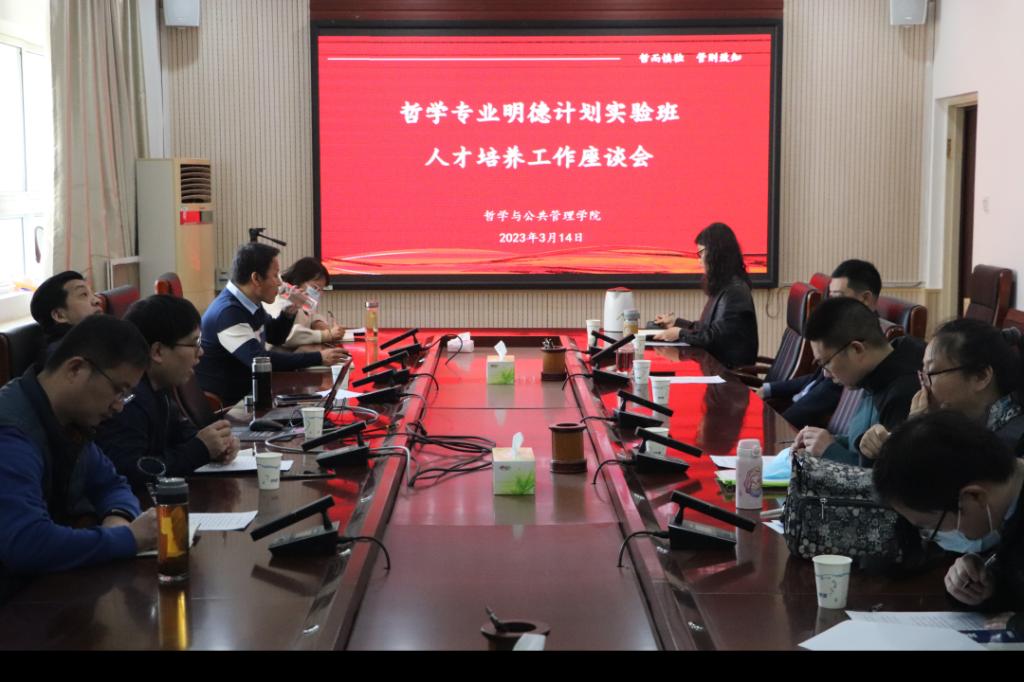 3月14日,学院召开“明德计划”实验班人才培养工作座谈会,明德班班主任孙少飞就毕业年级哲学专业、哲学“明德计划”实验班目前考研和就业基本情况进行了专题汇报。与会领导和老师围绕“明德计划”实验班在人才培养目标、课程设置、导师制,实践教学、考研就业指导等方面议题进行了深入讨论,并提出了建设性意见。院长姬志闯表示,要进一步明确目标与定位,凝炼特色,抓好导师制与课程建设,优化教学班级管理,全面提升实验班人才培养质量。党鸿军作总结发言,他表示要坚持高起点,持续制度创新,打造哲学专业“明德计划”班特色品牌,加强师资、课程和学生管理,营造积极向上、努力进取的学习风气,做大做强哲学专业“明德计划”实验班。