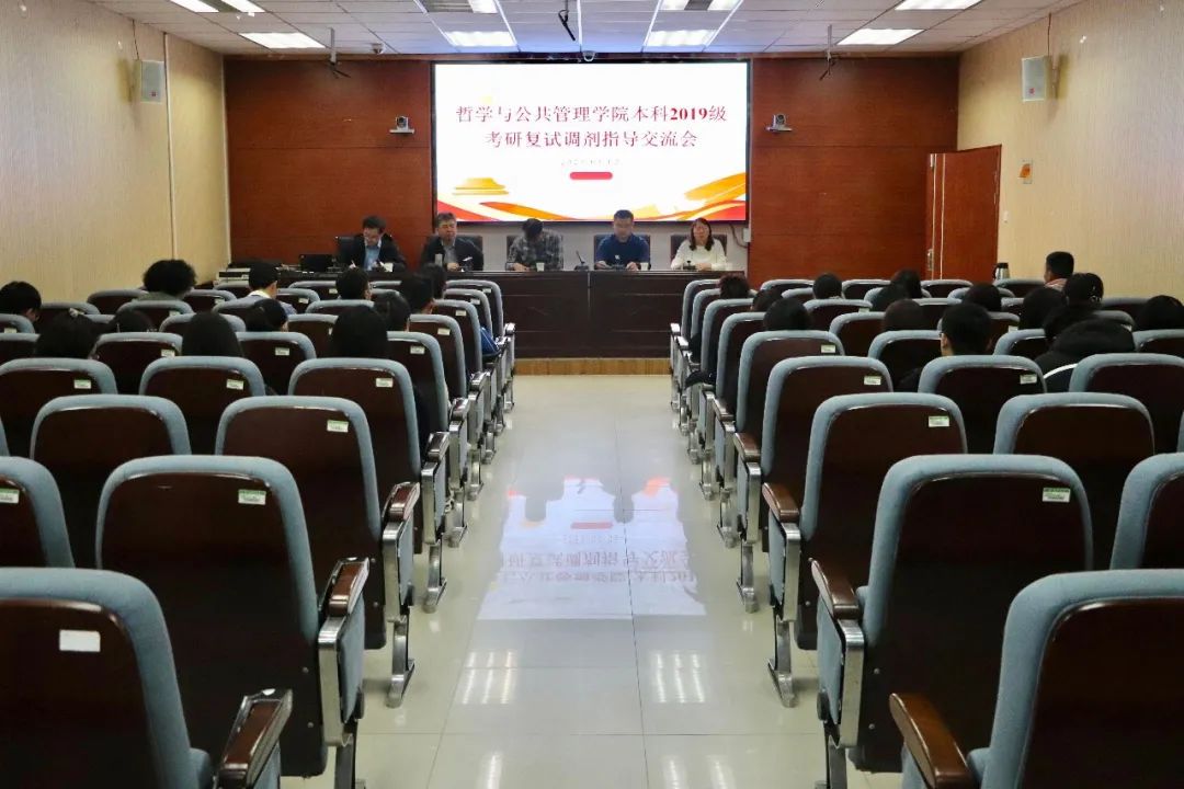 3月2日中午,学院于院第一会议室召开2019级考研复试交流会。院党委副书记骆春丽、副院长赵炎峰、劳动与社会保障专业凌文豪教授、行政管理专业刘辉教授应邀出席,会议由辅导员孙少飞主持。骆春丽祝贺同学们在考研道路上取得了阶段性的胜利,她鼓励大家要有“舍我其谁”的必胜信念,积极联系专业老师和学长学姐进行求助与指导。赵炎峰对如何开展复试准备,如何了解复试后调剂的基本信息等给予指导。凌文豪建议学生系统复习专业知识、了解学术前沿、拓展交叉学科视野。刘辉希望同学们分清主次,抓住重点,做好规划,树立自信。