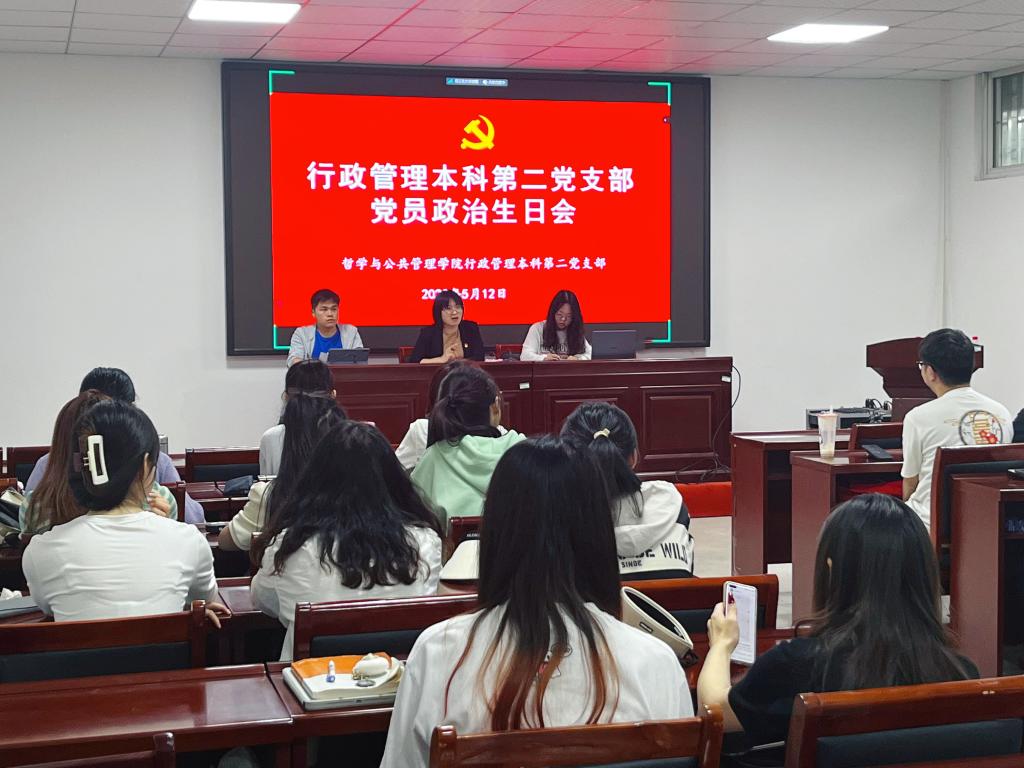 为进一步加强党员理想信念,时刻牢记党员“第一身份”,强化使命担当,5月12日,行政管理本科第二党支部于学院第三会议室举行“政治生日”主题党日活动。支部书记贾银兰与支部全体党员齐聚一堂,为9名党员过“政治生日”,共话入党感悟。