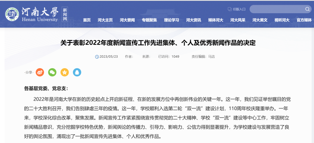 循时代征程,传哲管之声。5月23日,我校对2022年度新闻宣传工作先进集体、个人与优秀作品进行表彰,糖心视频 荣获多项荣誉。