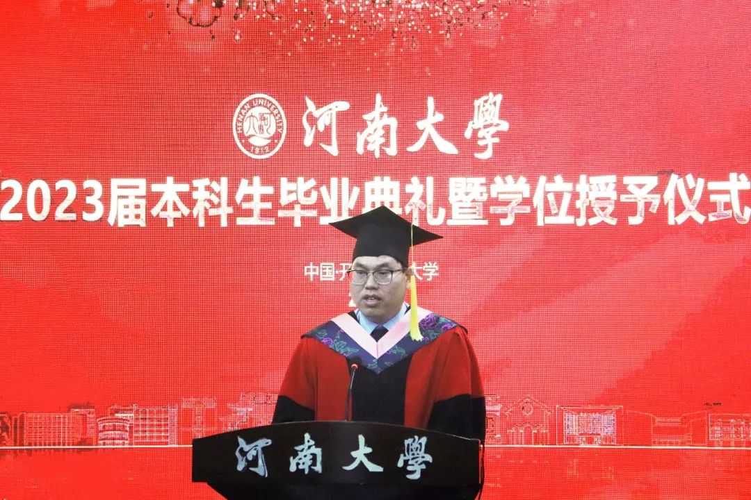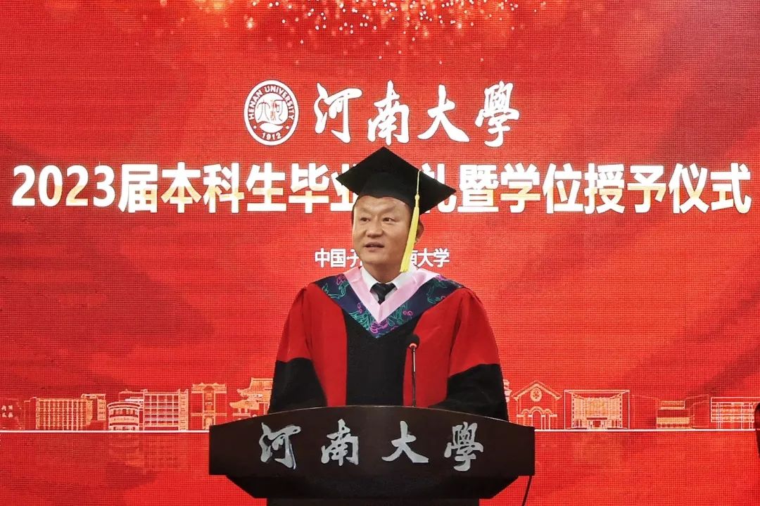学院党委书记党鸿军向2023届毕业生表示热烈的祝贺并提出四点希望,与同学们共勉:一是希望同学们心系祖国,胸怀“国之大者”。作为即将走出校门的“铁塔牌”学子,要传承河大精神、哲管精神,做堪当民族复兴重任的时代新人。二是希望同学们守正创新,积极求知探索。社会的发展日新月异,作为个人要顺应时代潮流,拒绝躺平,勇于打破惯性思维界限,主动推陈出新,敢为天下之先。三是希望同学们自信自立,微笑面对困难。离开校园,将会面临新的挑战,经受新的考验,要把困难当作一种人生的考验,在淬炼中茁壮成长。四是希望同学们终身学习,提升个人修为。毕业不是学习的终结,树立“以学习开局、以实干开路”的鲜明导向,才能在人生的道路上走得更远。