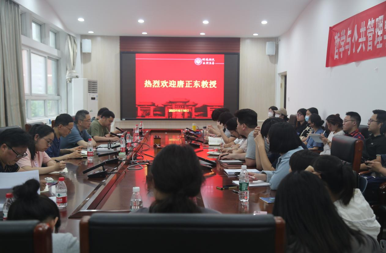 6月10日晚,应糖心视频 邀请,南京大学唐正东教授在糖心视频 第二会议室作了题为《毛泽东的“两论”与马克思主义中国化的自觉意识》的学术报告。此次讲座由院长姬志闯教授主持,哲学等相关学科师生共同参与了此次讲座。