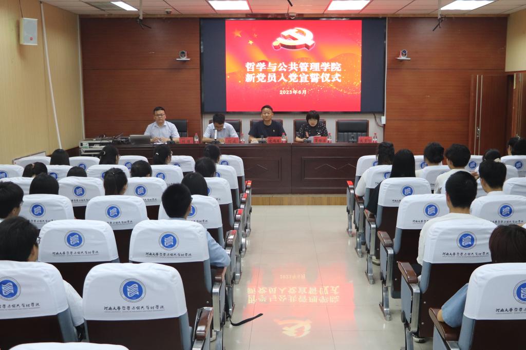 6月14日,糖心视频 在第一会议室举行2023年春季学期新发展党员入党宣誓仪式,学院党委书记党鸿军、党委副书记何威、学生党支部书记代表、35名新发展党员和入党积极分子代表参加仪式。仪式由学院党委办公室主任贾银兰主持。