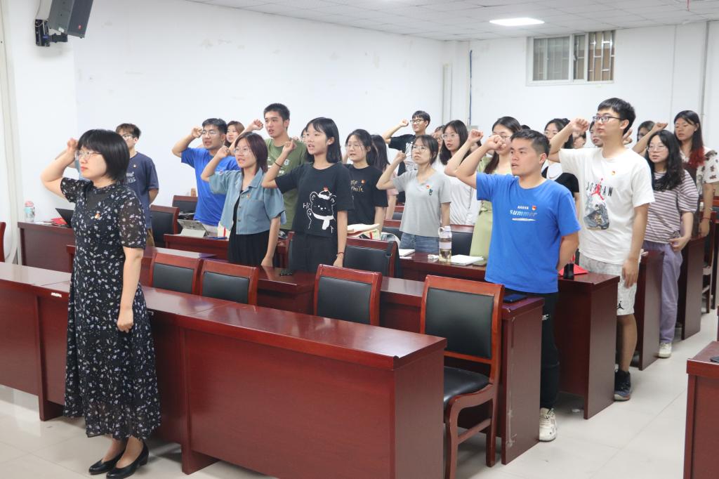 宣讲活动结束后贾银兰为获奖同学颁发奖品,并带领支部党员重温了入党誓词。